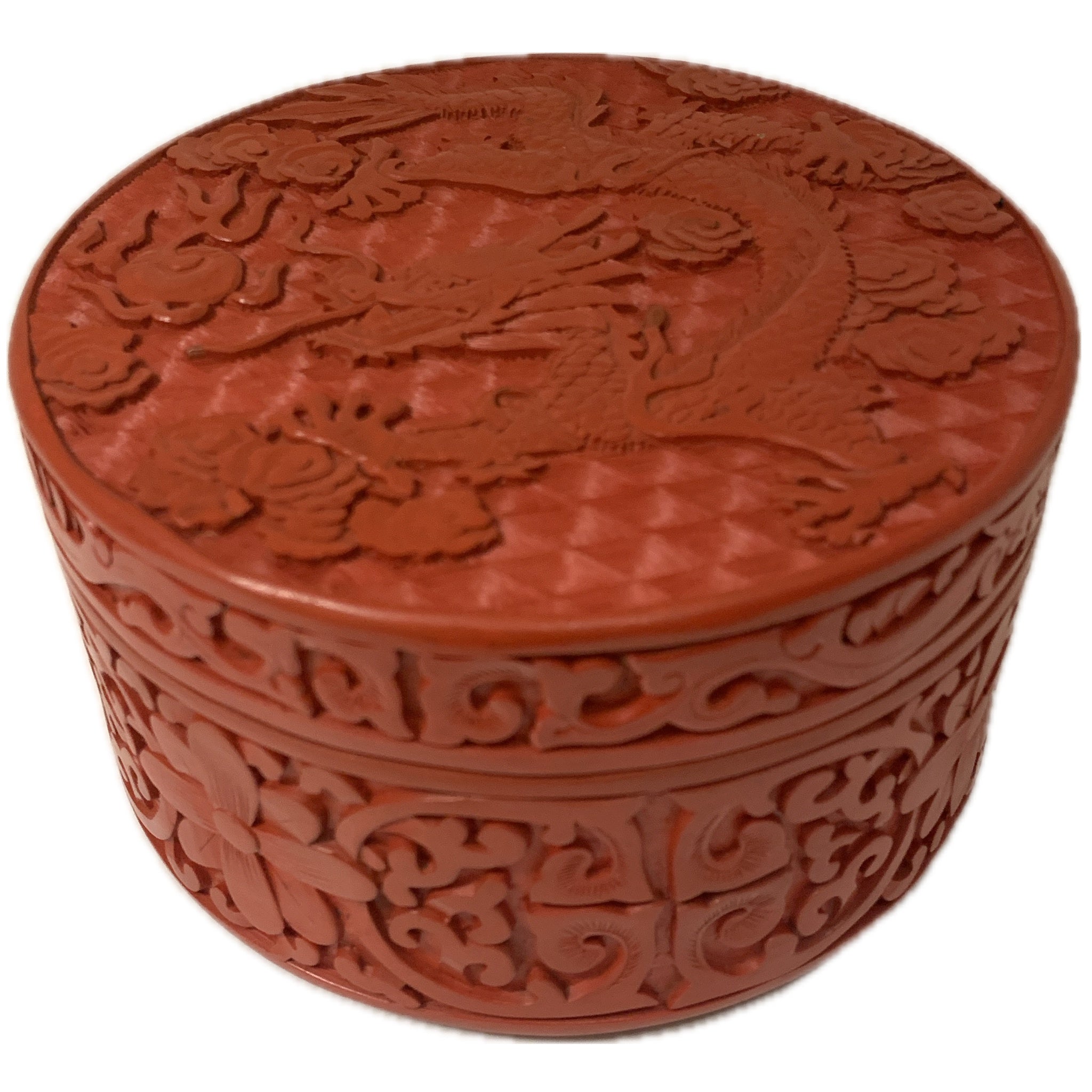 Dragon Carved Motif Lid On Chinese Cinnabar Box