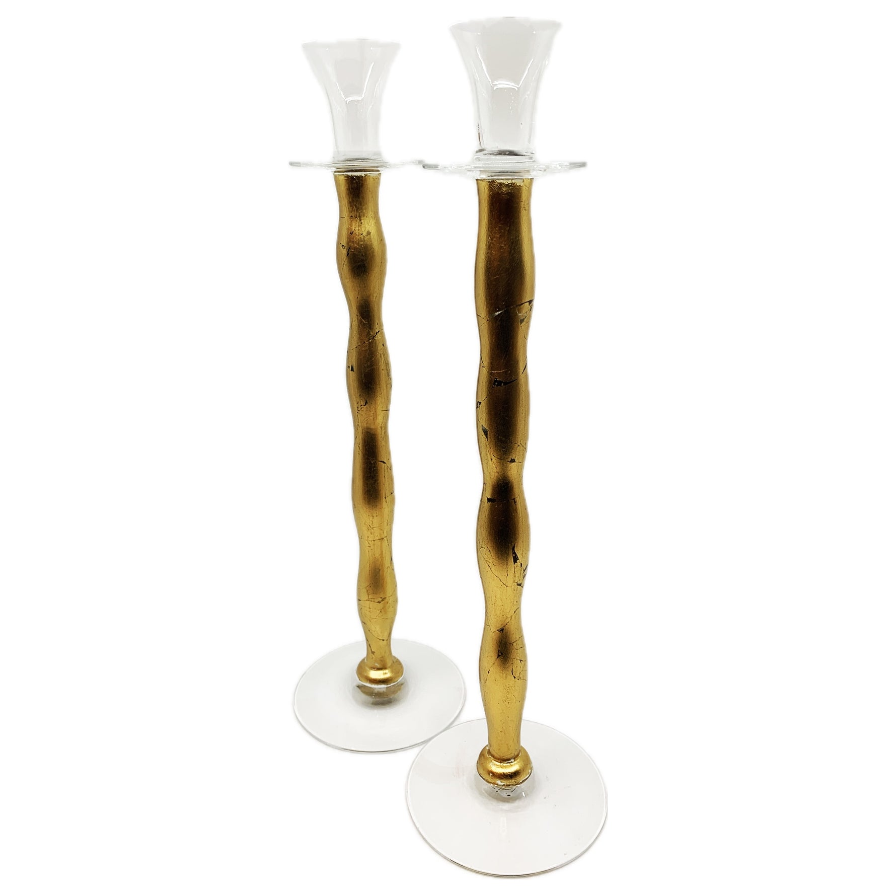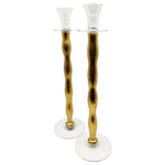 Vintage Gold-finished Glass Candlesticks, pair, 16"h