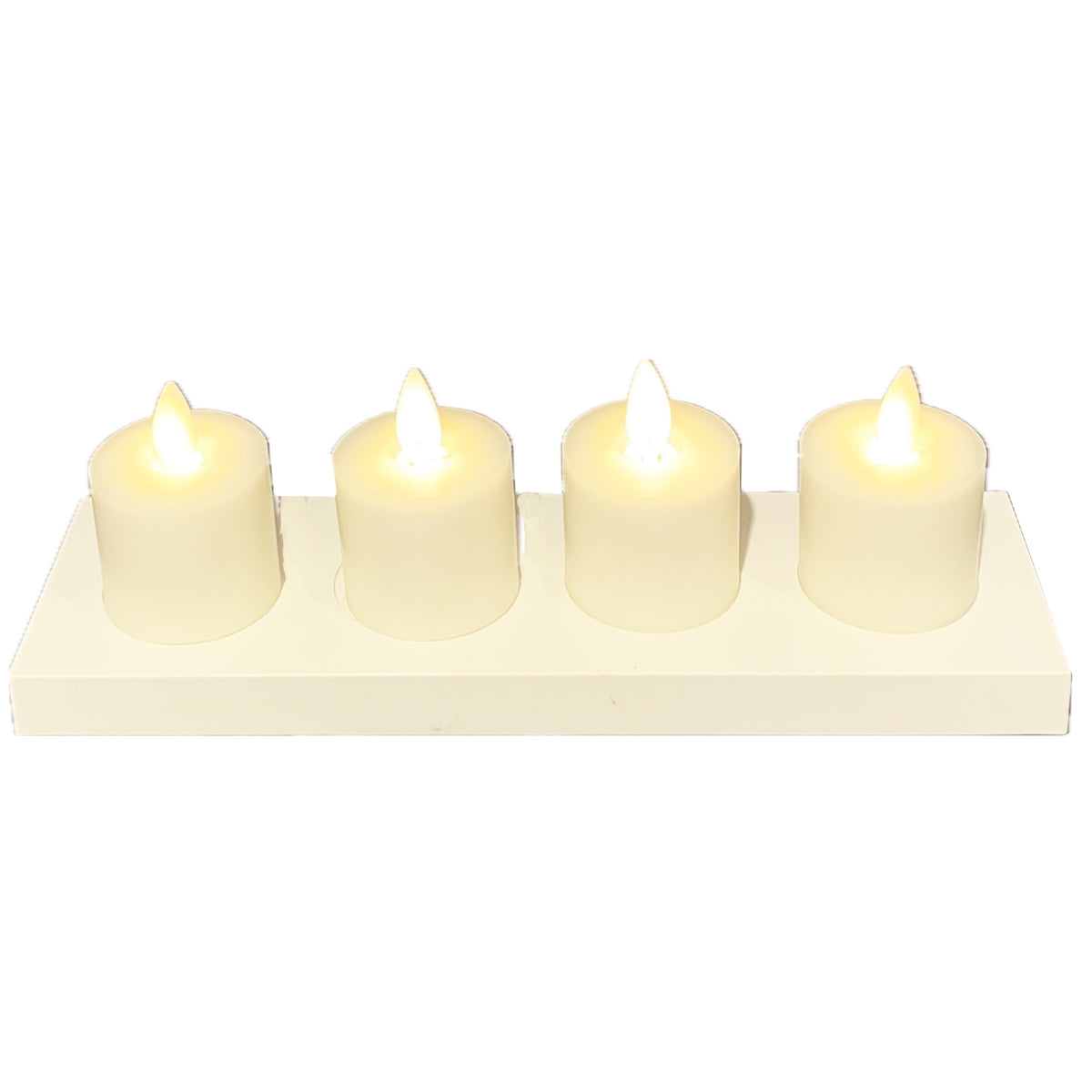 The set of 4 Tealight Candles Includes a plug-in charging dock
