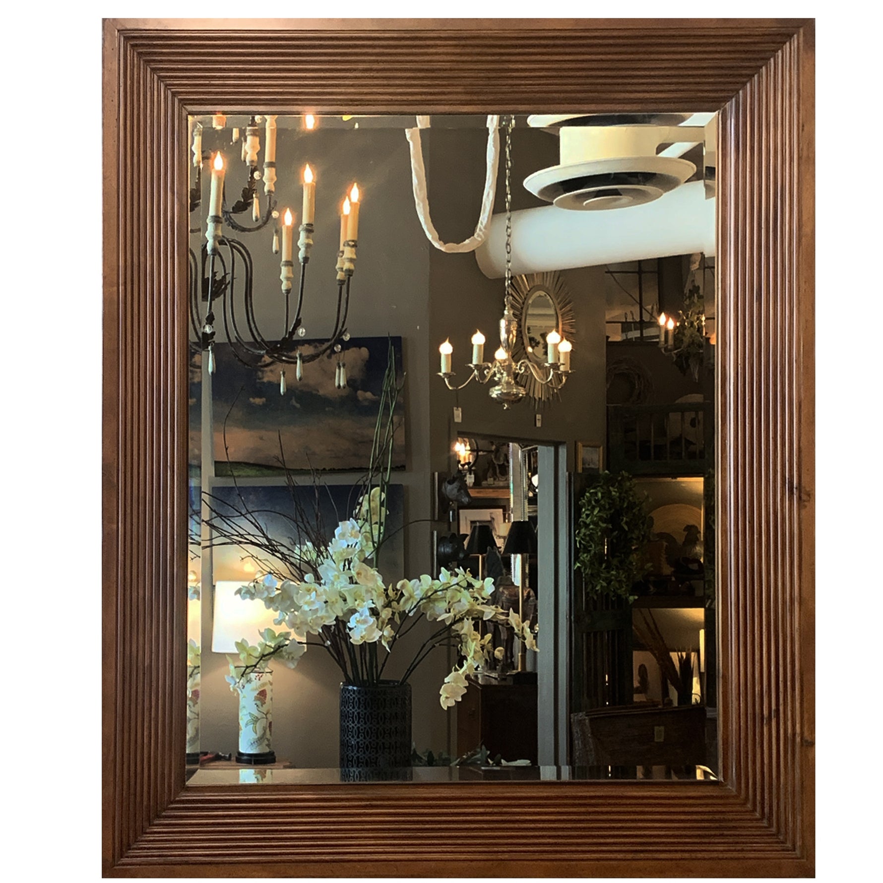 Beveled Ribbed Wooden Mirror With Beveled Glass