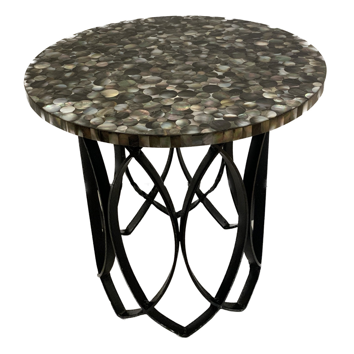 Mother of Pearl Top Side Table with Black Iron Base