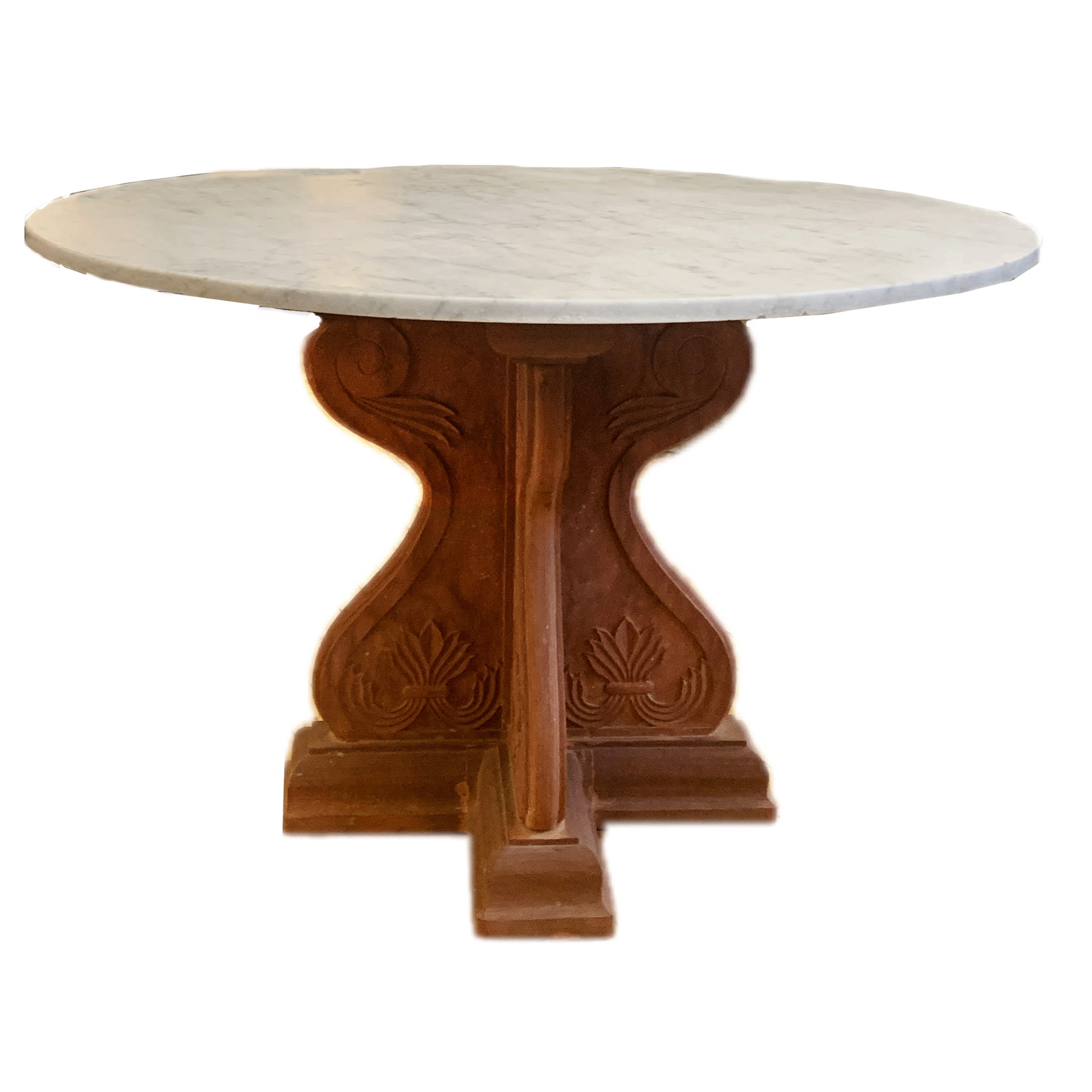 Red Sandstone Pedestal with Italian White Marble 42" Top