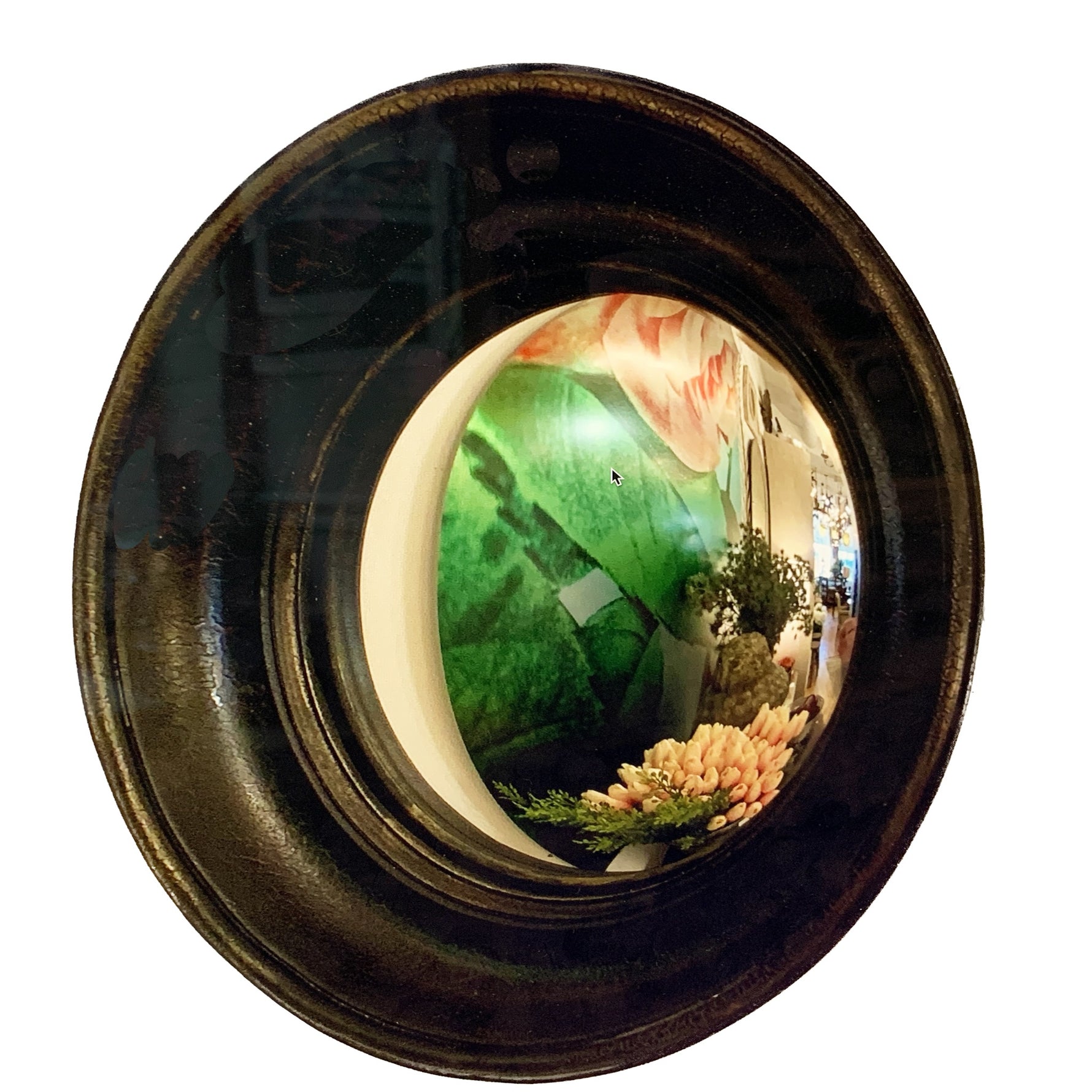 Black Convex Mirror with Gold Detail