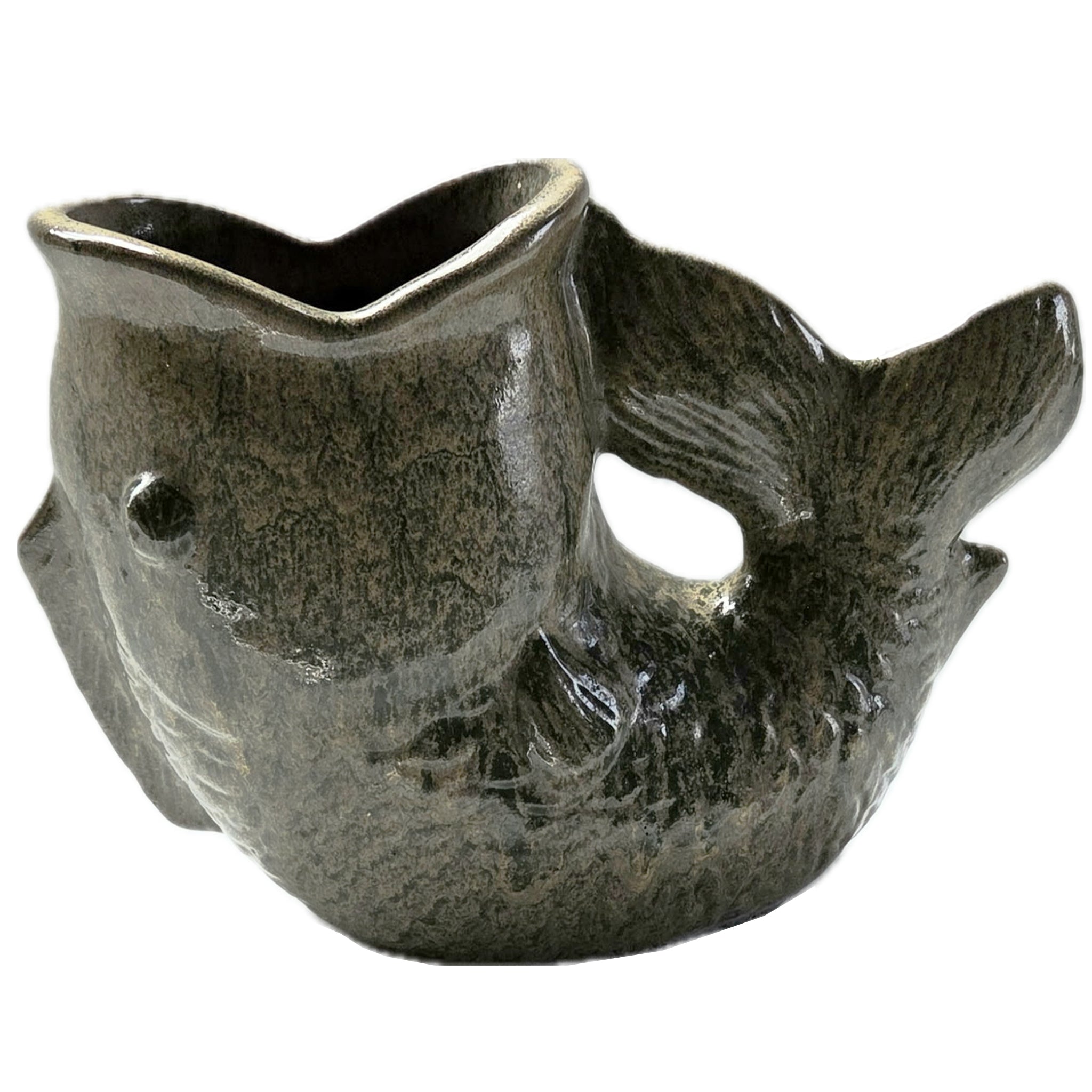 Vintage Green Glazed Terra Cotta Fish Planter