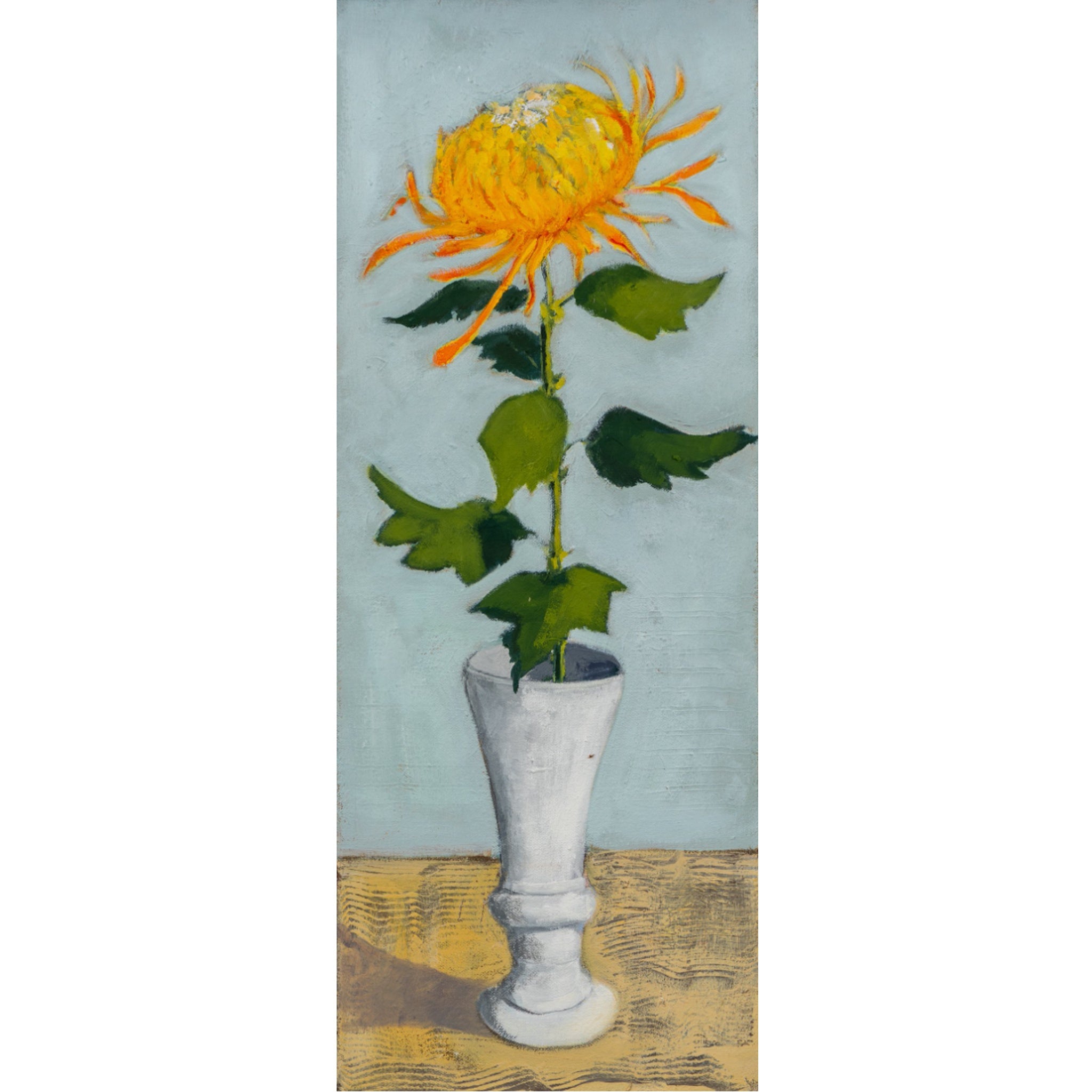 Yellow Chrysanthemum In Glass Vase, 2023, Jill Michell, oil on wood panel, framed